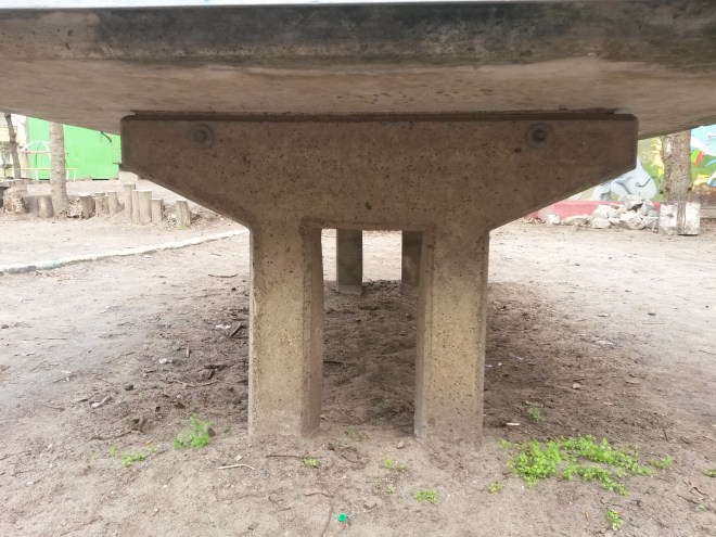 Gedacht, gesagt, getan! Unsere Tischtennisplatte hat Beinkleider bekommen und wir haben den Entstehungsprozess für Euch festgehalten. Und ganz nebenbei beim Blick auf die Unterseite entdeckt, dass unsere Platte zu unseren ältesten „Hofmöbeln“ gehört: seit 1989 schmückt sie unseren Hof! Das Beweisfoto seht Ihr ganz oben…es war leider kein 6. April.