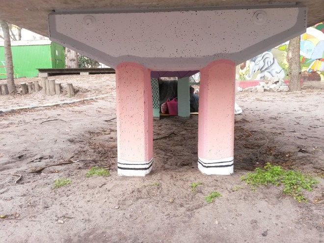 Nach mühsamen und ermüdenden Corona-Krisenplena standen wir auf dem Hof und erkannten plötzlich, dass unsere Tischtennisplatte Beine hat – und die waren ganz nackt und grau! Grau gibt es bei uns nicht, dachten wir uns und auch wenn Corona oft Zeit und Optimismus frisst, so setzt diese ungewohnte Situation doch auch Energie und Lust auf Positives frei.