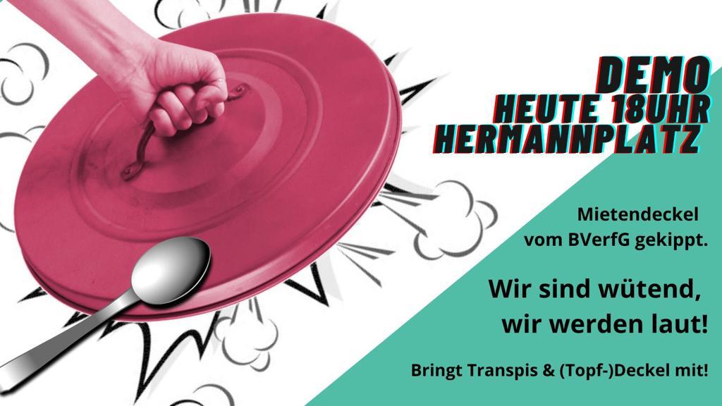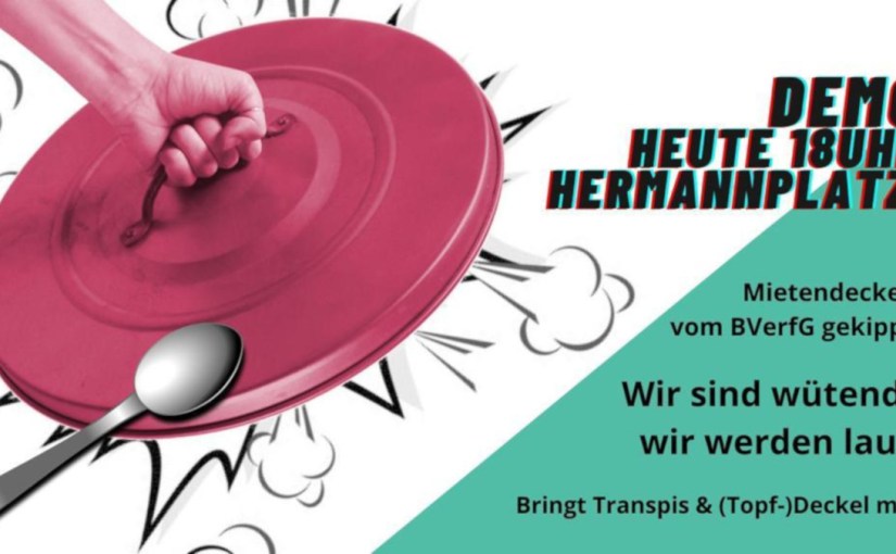 Der 2. Senat des Bundesverfassungsgerichts in Karlsruhe hat die landesrechtliche Mietpreisbegrenzung in Berlin für unzulässig erklärt. Das Bündnis gegen Verdrängung und Mietenwahnsinn rief deshalb zur Lärmdemo auf.