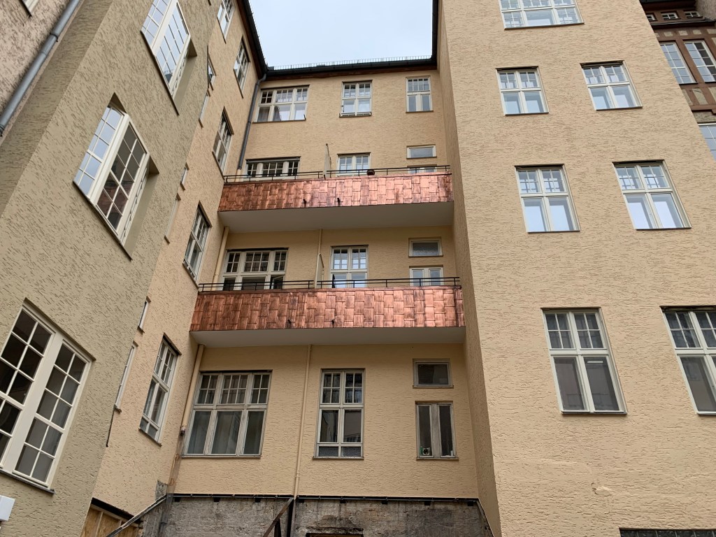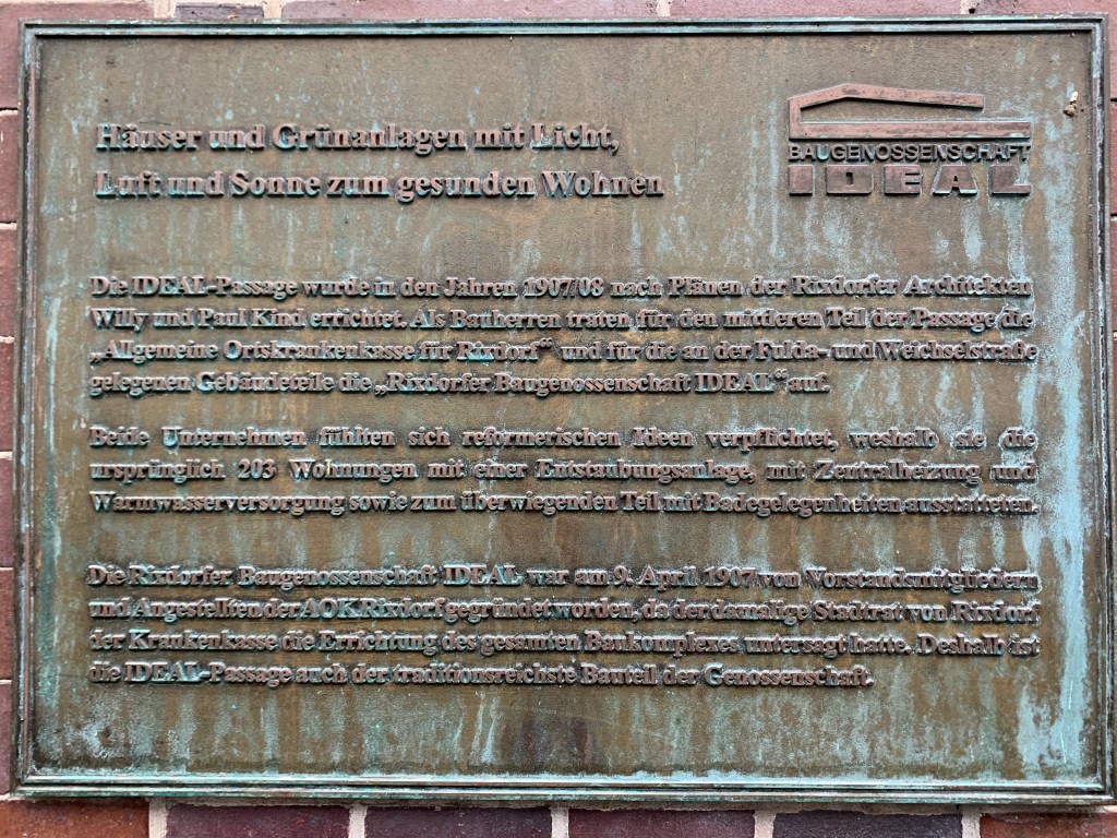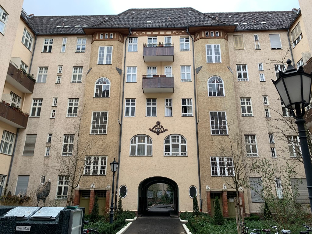 Gefunden hatten wir eine Mietwohnanlage zwischen Fuldastraße 55–56 und Weichselstraße 8 im Quartier Donaustraße-Nord in Berlin-Neukölln. Sie wurde 1907/1908 errichtet. Die Anlage einschließlich ihrer Innenhöfe steht unter Denkmalschutz.