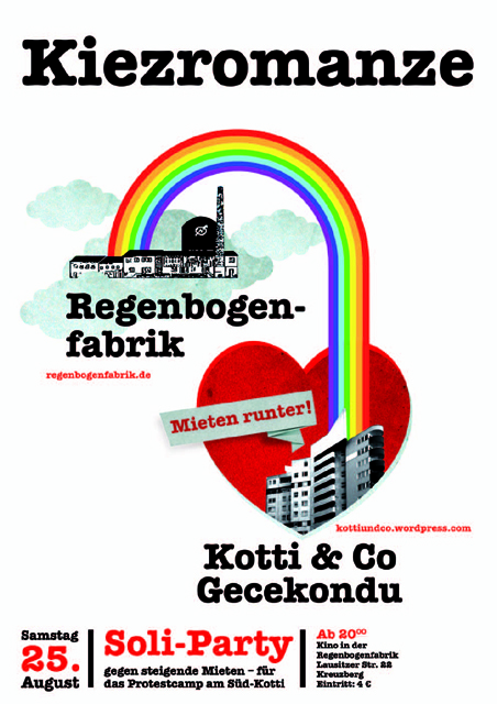 Am Samstag, 26.5.2012 um 17:00 haben wir unsere Wohnungen am südlichen Kottbusser Tor nach einem Strassenfest der Mieterinitiative „Kotti & Co“ auf die Strasse verlängert. Wir protestieren damit gegen die steigenden Mieten im sozialen Wohnungsbau am Kottbusser Tor. Alle Verantwortlichen aus der Landes-Politik und von den Mietervereinen haben in den vergangenen Monaten zum Ausdruck gebracht, dass sie für den sozialen Wohnungsbau nichts tun wollen oder nichts tun können. Dabei fehlt lediglich der politische Wille, hier Mietobergrenzen einzuführen, um die Mieter, die zum Teil seit Jahrzehnten hier wohnen, zu schützen. Die Problematik ist vielen bekannt.