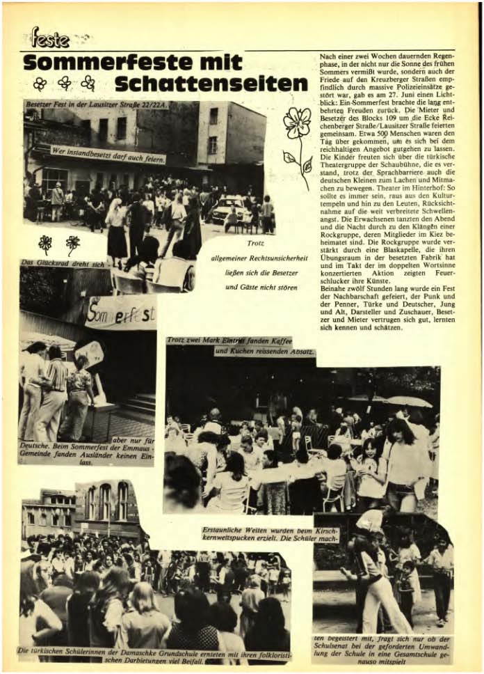 1981 | Sommerfest auf dem Fabrikgelände mit dem türkischem Kindertheater der Schaubühne. Organisiert von der Mieterinitiative Block 109 und dem inzwischen gegründeten Verein Regenbogenfabrik e.V.