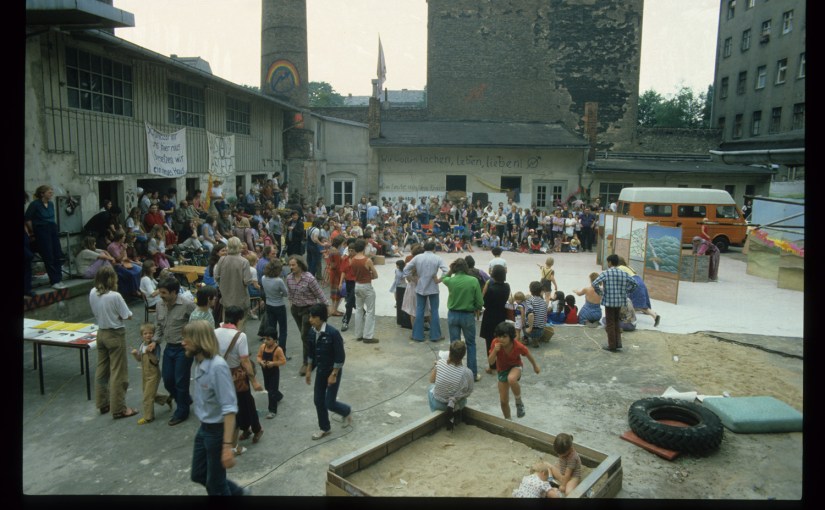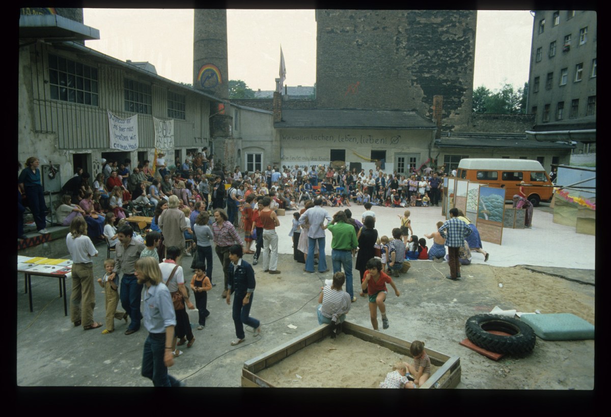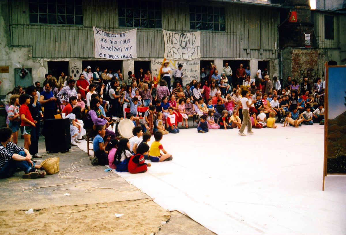 1981 | Sommerfest auf dem Fabrikgelände mit dem türkischem Kindertheater der Schaubühne. Organisiert von der Mieterinitiative Block 109 und dem inzwischen gegründeten Verein Regenbogenfabrik e.V.