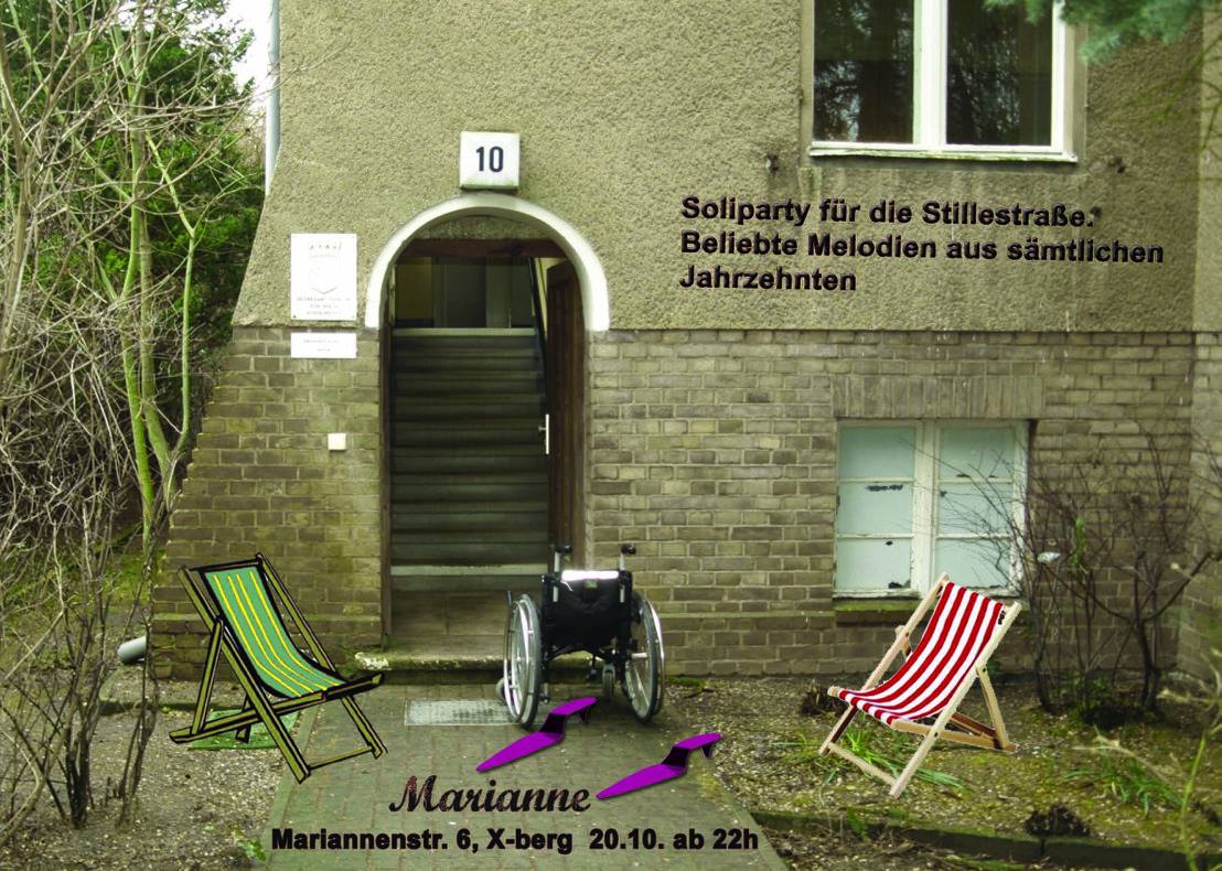 Wir tanzten und feierten für den Queeren-Wagenplatz in der Kiefholzstraße, den abgebrannten Lautsprecherwagen der Berliner Lautigruppe, für Romafamilien in Berlin, für Sonja und Christian (RZ), das Bündnis gegen Zwangsräumung und die Stillestraße.