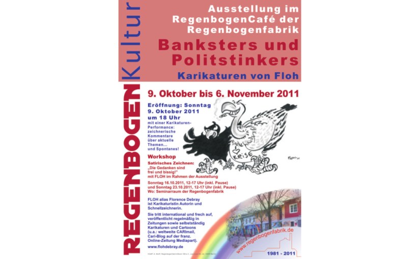 Ausstellung im RegenbogenCafé mit Karikaturen von FLOH