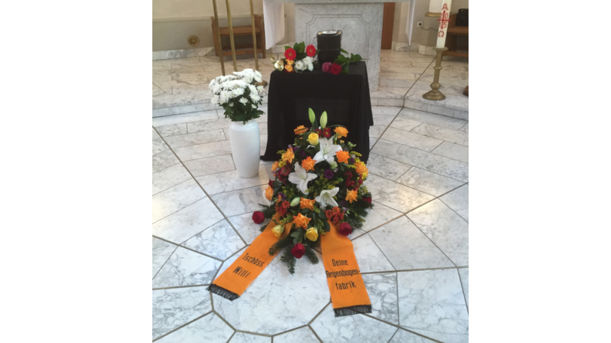 Willi hat gerne Schönes gestaltet, das merkte mensch, wenn er von seinem Garten schwärmte. Die Fabrikfeste kriegten von ihm immer einen extra Farbtupfer und die Lichtinstallation zum 30. Jubiläum der Fabrik stammt ebenfalls von Willi. Inzwischen aktualisiert hängt sie noch immer im RegenbogenKino.