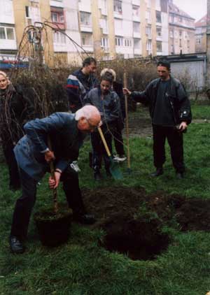 Der Herr mit dem blauen Blazer, der so tatkräftig den Baum in die Erde brachte, Herr Minz, war damals der Vorsitzende des Vereins.