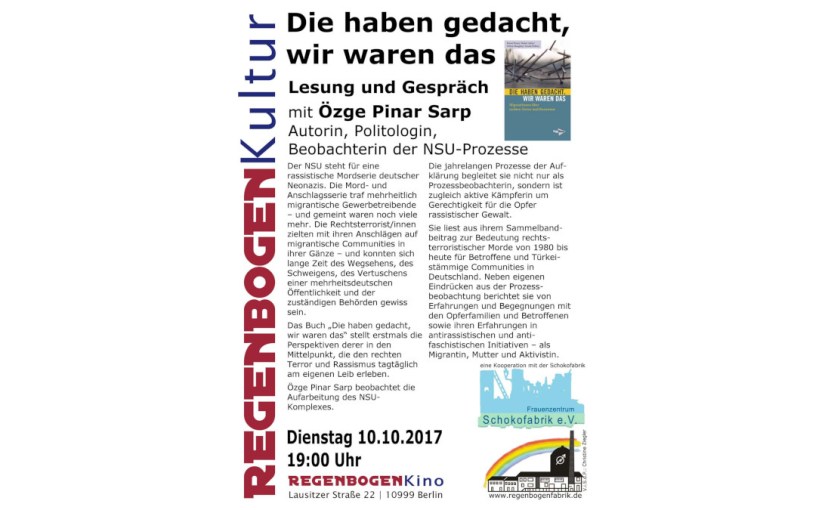 Der NSU steht für eine in der bundesdeutschen Geschichte rassistische Mordserie deutscher Neonazis. Das Buch „Die haben gedacht, wir waren das“ stellte erstmals die Perspektiven derer in den Mittelpunkt, die den rechten Terror und Rassismus tagtäglich am eigenen Leib erleben.