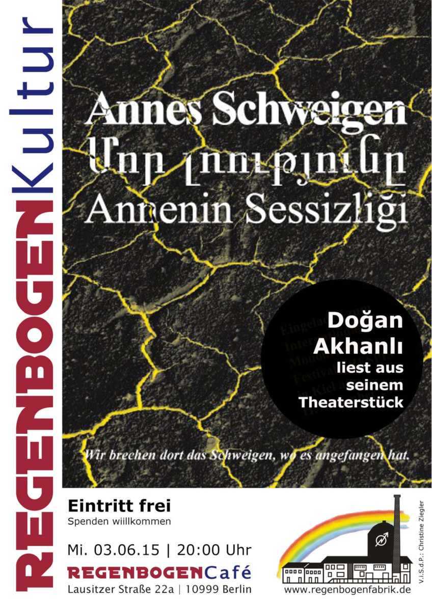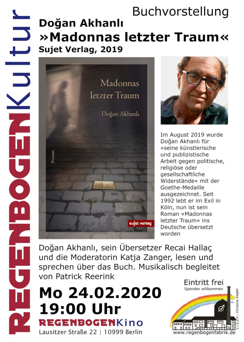 Hier möchte ich noch erinnern, mit welchen Veranstaltungen Doğan in der Regenbogenfabrik unser Kulturleben bereichtert hat. Schritt für Schritt konnte ich entdecken und darüber bin ich in aller Trauer froh.
