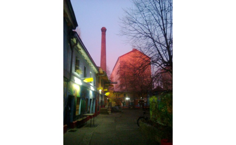 Die Regenbogenfabrik im ersten Morgenlicht. Billigste Nokia-Kamera aus der mobiltelefonischen Steinzeit.