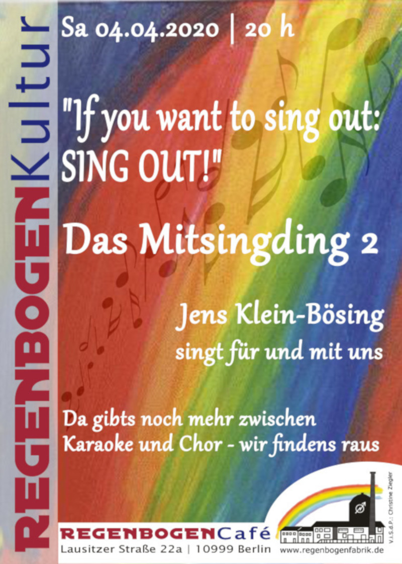 Bis 2020 ging das und in dem Jahr hatten wir Großes vor. Zehn Termine hatten wir uns bereits für das „Mitsingding“ ausgeguckt. Doch wie alle nun wissen, gemeinsames Singen war im Zeichen der Pandemie nicht der richtige Zeitvertreib. Aber wir werden es wieder starten, im Sommer im Freien, versprochen!