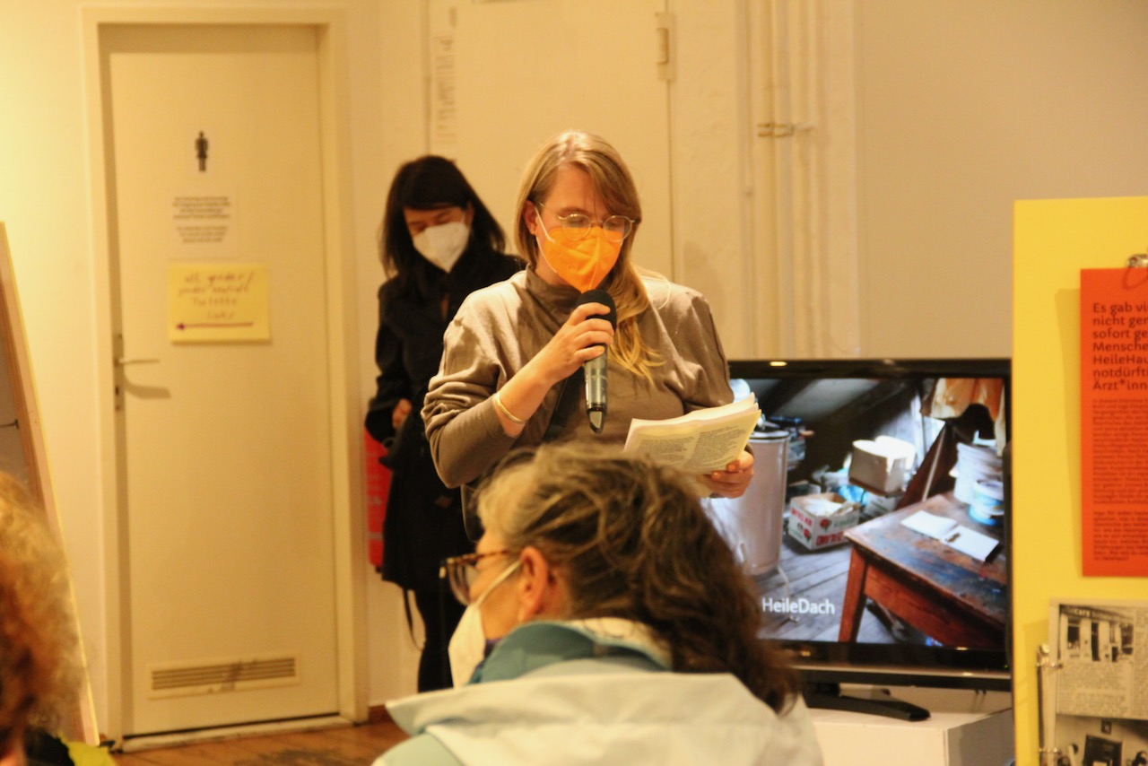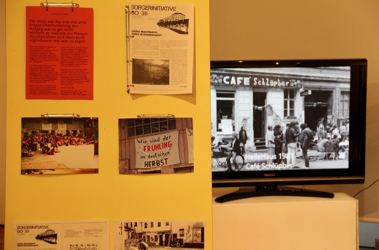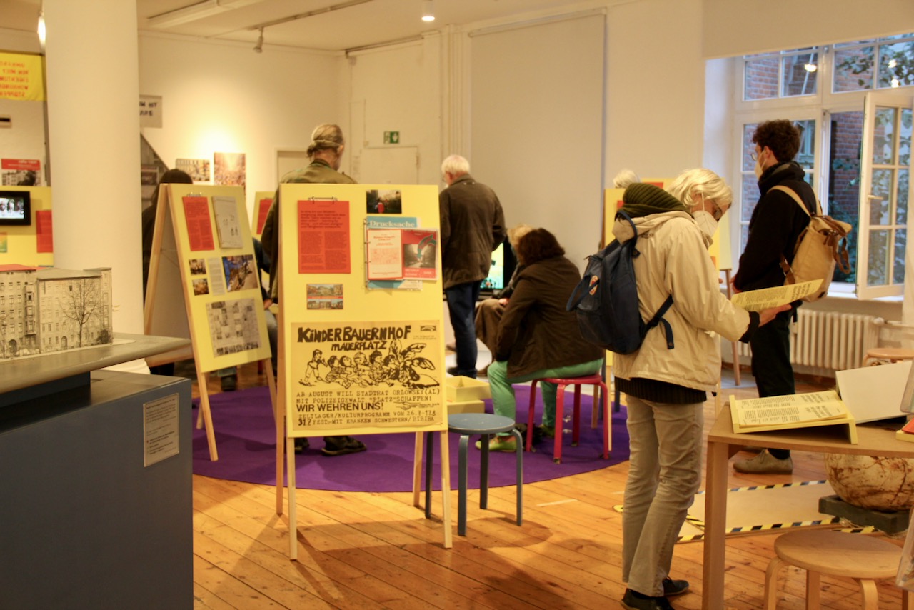 Wir eröffnen heute die Ausstellung “dann machen wir’s halt selbst“, die auf die Initiativen von Regenbogenfabrik, HeileHaus, Schokofabrik und Kinderbauernhof am Mauerplatz (Projektgruppe) zurückgehen, vier Initiativen, die vor 40 Jahren besetzt wurden und das bedeutet auch, die seit 40 Jahren als selbstorganisierte Projekte in Berlin bestehen.
