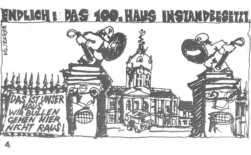 Am Samstag, den 7. Februar 1981 ist im sogenannten „Sanierungsgebiet Am Klausenerplatz“ in Charlottenburg das erste von insgesamt elf Häusern in Charlottenburg „geknackt“ worden. Eine Handvoll BesetzerInnen hat sich nach eingehender Beratung, sowohl aus strategischen wie taktischen Überlegungen für diesen Samstag entschieden, um eine drohende Luxussanierung durch den Wohnungskonzern Neue Heimat (NH) zu verhindern.