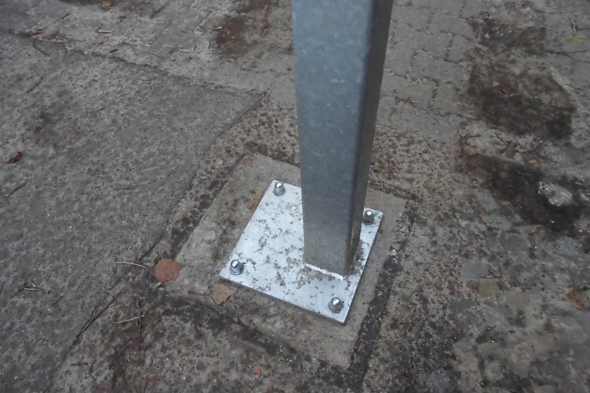 Die Fundamente hatten noch Zeit, richtig durchzutrocknen, dann ging es an die Montage der Torpfosten.