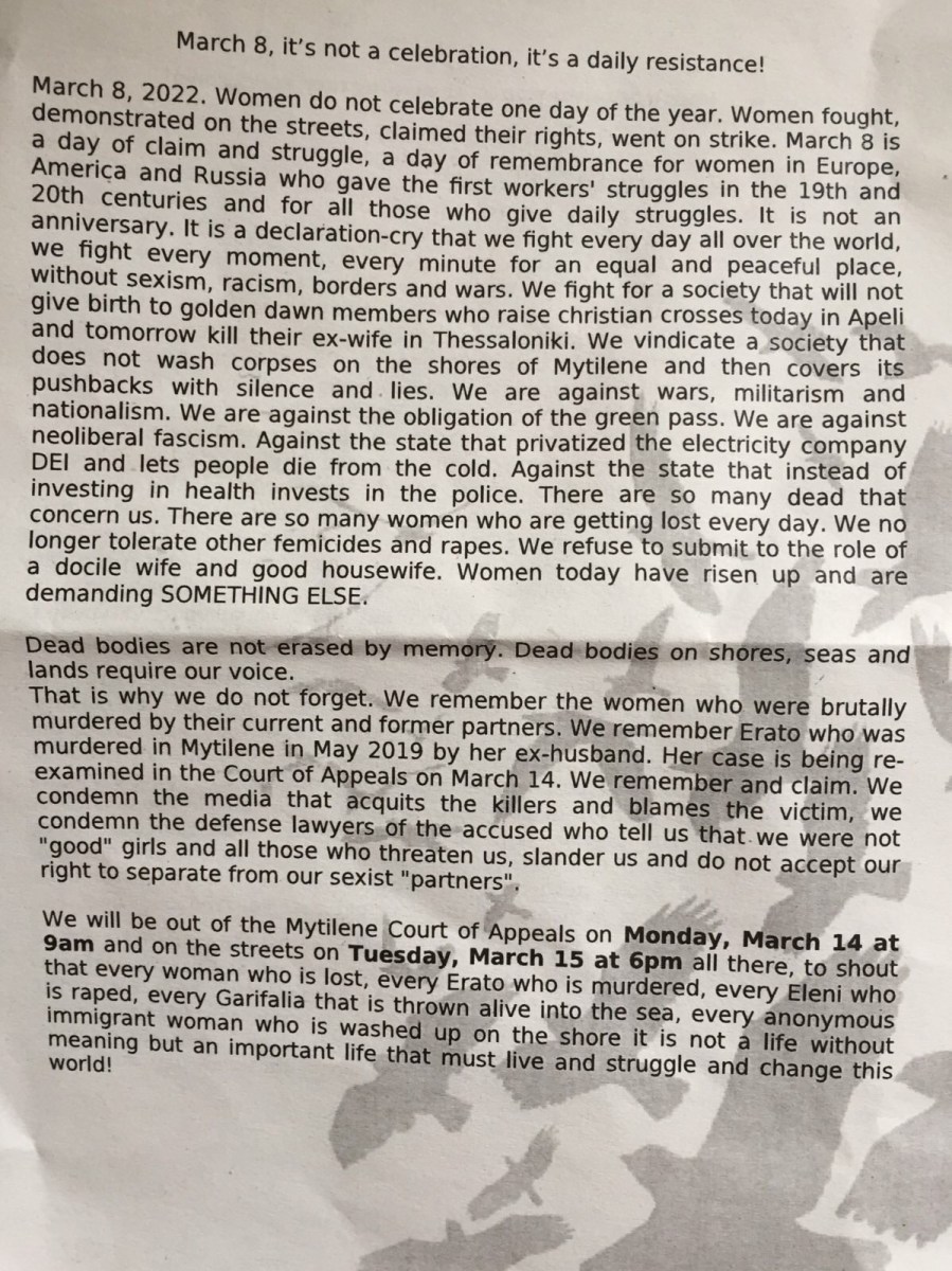 Ich komme vom Bündnis für sexuelle Selbstbestimmung, das heute mit einigen anderen Gruppen auf dem Nettelbeckplatz versammelt ist. Ich überbringe solidarische Grüße von allen Mitstreiter:innen. Beim feministischen Kampftag 2023 soll es – nachdem sich hoffentlich auch Corona aus dem Staub gemacht hat – eine Riesendemo geben. Das machen wir gemeinsam. Heute trösten wir uns damit, dass auch schon 1911, am ersten internationalen Frauentag, in Berlin 42 Veranstaltungen gezählt wurden, die alle glänzend besucht waren.