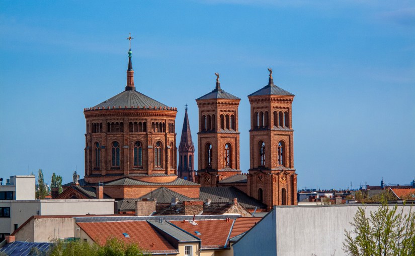 Die St.-Thomas-Kirche auf dem Mariannenplatz wurde 1869 eingeweiht. Die Kirche hat sozusagen zum 150. Geburtstag ein Buch geschenkt bekommen, keinen Blog, aber immerhin. Das Buch heißt „Kirche auf der Grenze – Die St.-Thomas-Kirche in über 150 Jahren Berliner Geschichte“. Es ist kein typischer Kirchenführer geworden. Es ist eine Art Spaziergang aus der Kirche heraus, durch die Luisenstadt, durch SO36 und wieder in die größte städtische Kirche Berlins hinein.