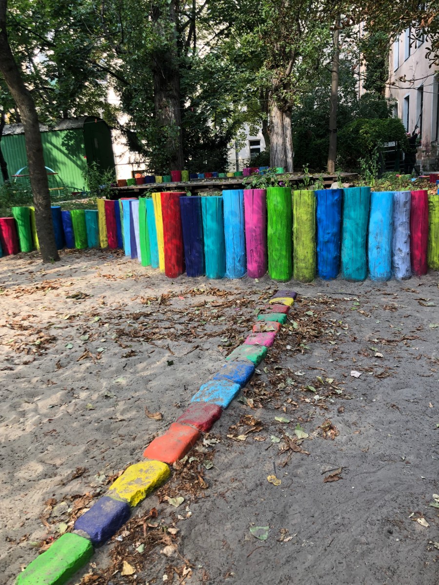 Im August hatte sich auch die Einfahrt mit Hilfe von Simon regenbogenfarben gezeigt.