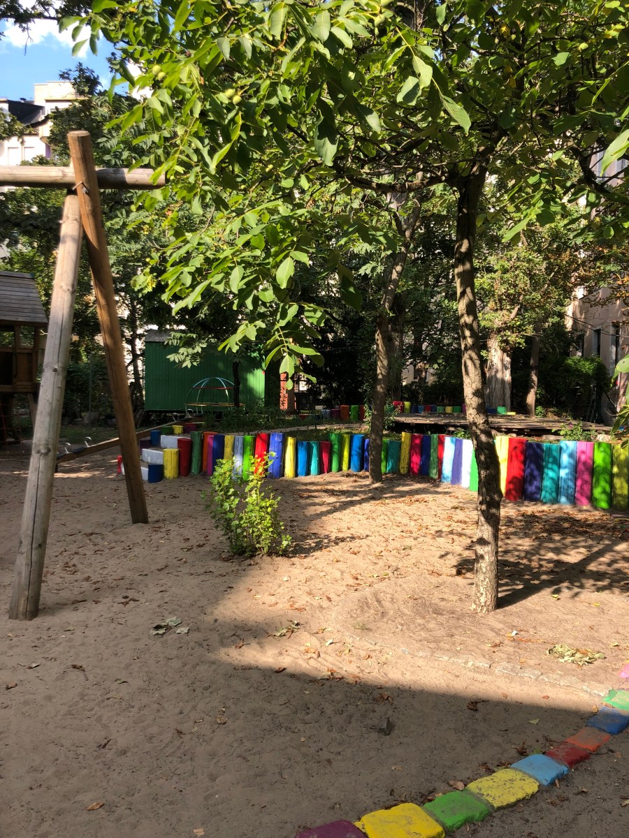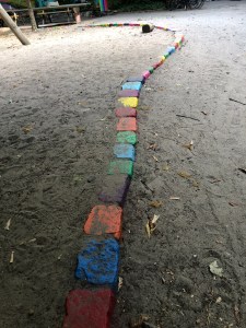 Die Steine rings um den Spielplatz hatten auch eine Auffrischung nötig. Viele flinke Füße waren drübergelaufen.