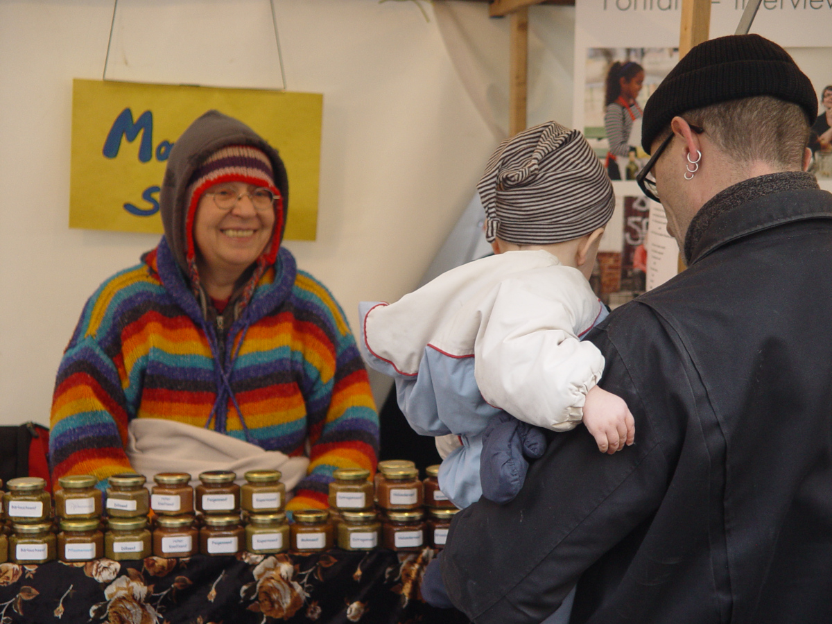 Die Tür öffnet sich, ohne Nachfrage. Im dritten Stock steht die Wohnungstür auf, verschiedene, meist nicht mehr ganz junge Menschen, tragen Tassen und Teller in das WG-Wohnzimmer. Es ist Samstagmorgen, und wie immer samstags zwischen halb zehn und halb zwölf, ist jeder, der mag, zu einem offenen Frühstück eingeladen. An der langen Holztafel, an der etwa 15 Leute sitzen, ist noch ein Platz frei, neben Christian Herwartz. Der liebe Gott neben dem Heiligen von Kreuzberg.